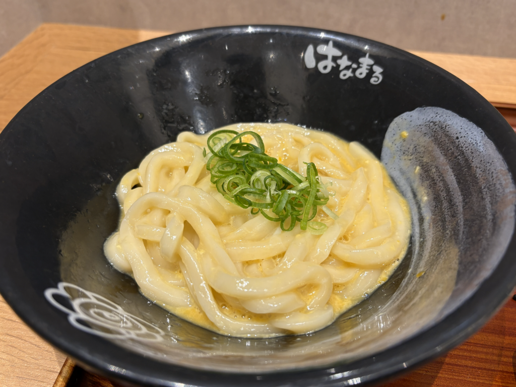 朝飯から15分しかたってないけど昼飯です。やっぱかま玉だよなと注文してまだ慣れていない店員がスッと温泉卵をトレイに置いてくる。アッそれ違います。