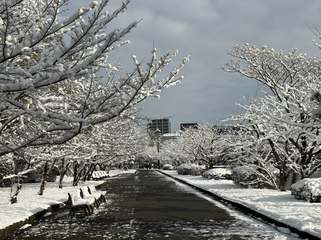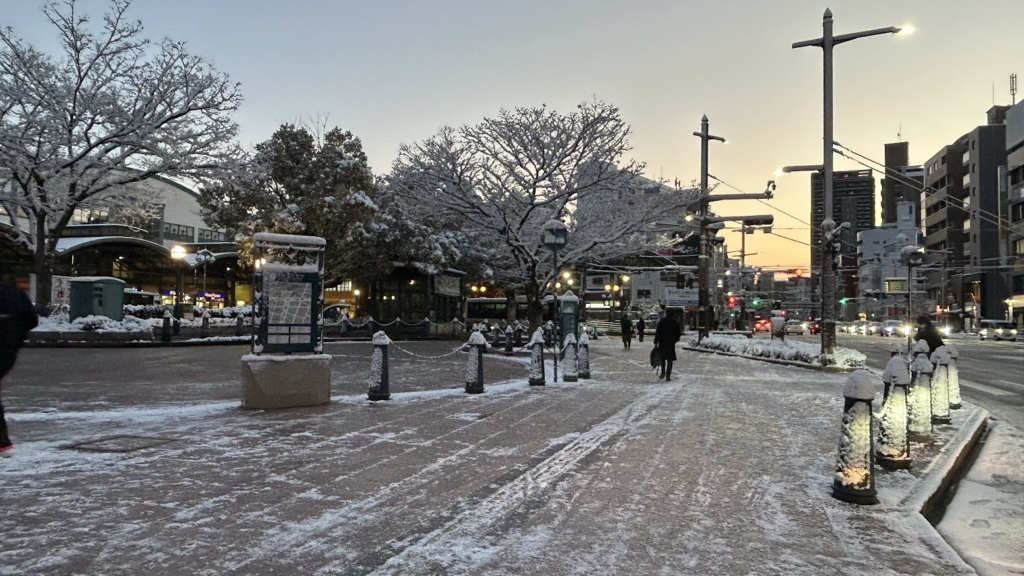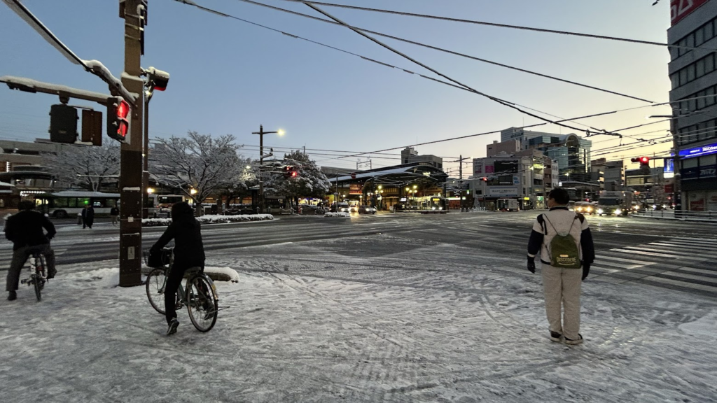 めっちゃ雪道だったので途中で一回こけた。いたい。